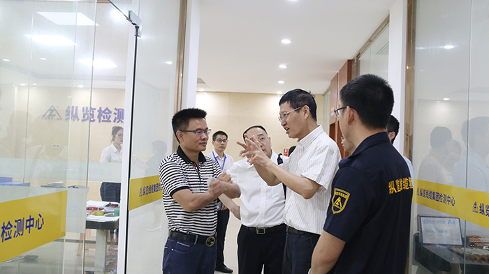 (汪會長在陳董事長的陪同下參觀公司展廳) (汪會長認(rèn)真聽取縱覽集團(tuán)董事長助理兼工廠副總監(jiān)蘇宏發(fā)對公司產(chǎn)品的介紹) (雙方在縱覽集團(tuán)檢測中心邊參觀邊交流) (汪會長在陳董事長的陪同下參觀車間) |