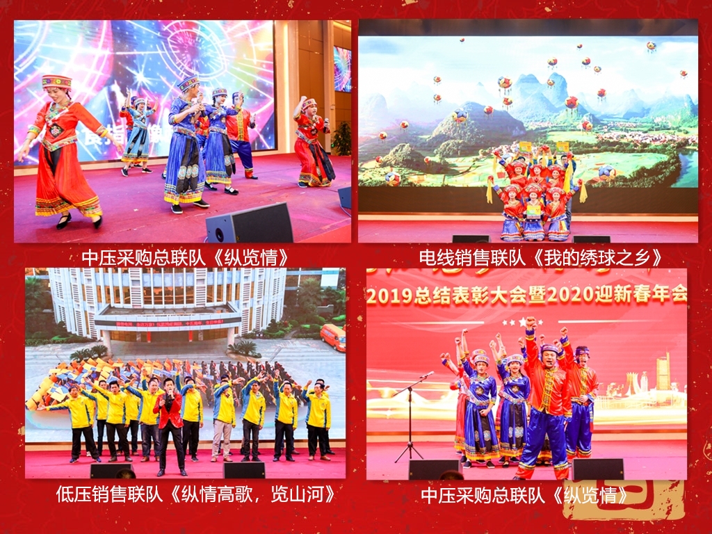 2020年1月13日,縱覽線(xiàn)纜集團(tuán)2019年總結(jié)表彰大會(huì)暨2020年迎新春年會(huì)在華南城維也納金色大廳隆重舉行。集團(tuán)董事長(zhǎng)陳秀銳先生、總裁唐崇健先生、監(jiān)事會(huì)主席林曉敏女士、副董事長(zhǎng)徐洪虎先生、常務(wù)副總裁彭斌先生、總工程師劉小祥先生、董事長(zhǎng)助理兼財(cái)務(wù)總監(jiān)陳楊先生、董事長(zhǎng)助理兼銷(xiāo)售副總監(jiān)韋艷秋女士、總裁助理兼人力行政總監(jiān)張彩菊女士及工廠總監(jiān)楊興恒先生出席了本次年會(huì),集團(tuán)領(lǐng)導(dǎo)與縱覽的各位嘉賓們、縱覽伙伴們歡聚一堂,共襄盛會(huì)! 走過(guò)往昔,奮斗的汗水剛剛拭去,回首征途,勝利的笑容不斷蔓延。時(shí)間,如白駒過(guò)隙,2019,縱覽人還來(lái)不及擦凈拼博的汗水,便迎來(lái)了鮮活嶄新的2020。新的一年,新的起點(diǎn)。縱覽人將不忘初心,聯(lián)合廣大負(fù)責(zé)任的經(jīng)銷(xiāo)商、裝飾公司、水電工師傅們,讓專(zhuān)供南方電網(wǎng)的縱覽產(chǎn)品走遍八桂大地,走進(jìn)億萬(wàn)家庭。 14:30分,2019年總結(jié)表彰大會(huì)準(zhǔn)時(shí)開(kāi)始,首先對(duì)過(guò)去一年先進(jìn)的個(gè)人和團(tuán)隊(duì)進(jìn)行表彰。每一位優(yōu)秀的縱覽人,他們不怕苦、不怕累,就怕任務(wù)完不成;他們勤勤懇懇、默默付出,有著強(qiáng)烈的奉獻(xiàn)精神;他們時(shí)刻以公司利益為先,舍小家為大家,全身心地投入工作。 表彰大會(huì)過(guò)后,一支熱情洋溢的開(kāi)場(chǎng)舞正式拉開(kāi)了方隊(duì)競(jìng)演的序幕。各個(gè)方隊(duì)精彩的亮相,一呼百應(yīng)、鏗鏘有力的氣勢(shì)看得讓人熱血沸騰,展現(xiàn)了縱覽團(tuán)隊(duì)的氣勢(shì)、創(chuàng)意和不掉隊(duì)、不服輸?shù)膱F(tuán)隊(duì)精神。 開(kāi)場(chǎng)舞《我相信》 各方隊(duì)進(jìn)行口號(hào)展示