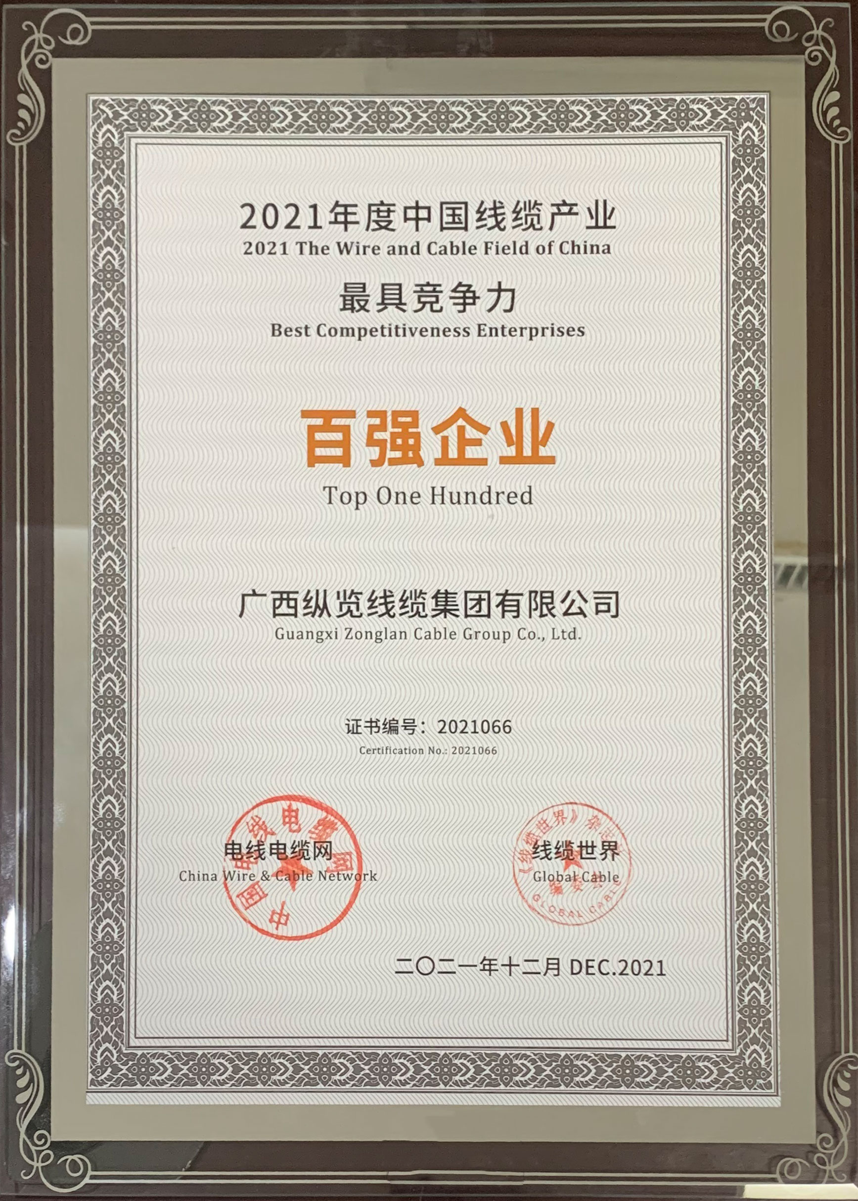 為了讓更多縱覽人主動(dòng)關(guān)心、了解公司的發(fā)展與成長(zhǎng),近期,縱覽線纜集團(tuán)開展了2021年度十大新聞評(píng)選,通過縱覽人的投票評(píng)選,最終評(píng)選出公司十大新聞,這是縱覽人在2021年這個(gè)時(shí)間刻度上的標(biāo)記。2022是新的起點(diǎn),我們必將砥礪前行,一路劈波斬浪。 TOP. 01 縱覽線纜集團(tuán)再次入圍“中國(guó)線纜行業(yè)最具競(jìng)爭(zhēng)力100強(qiáng)” 12月20日,2021年度中國(guó)線纜產(chǎn)業(yè)最具競(jìng)爭(zhēng)力企業(yè)榜單揭曉,縱覽線纜集團(tuán)憑借強(qiáng)勁的實(shí)力、突出的競(jìng)爭(zhēng)力,榮膺“2021年度中國(guó)線纜產(chǎn)業(yè)最具競(jìng)爭(zhēng)力企業(yè)100強(qiáng)”。 多年來,集團(tuán)始終致力科技引領(lǐng)、技術(shù)創(chuàng)新,實(shí)施綠色制造、智能制造工程,強(qiáng)化內(nèi)部管理,控本增效、質(zhì)量提升、精細(xì)服務(wù),以客戶為關(guān)注焦點(diǎn),以服務(wù)地方經(jīng)濟(jì)發(fā)展為己任,不斷提升行業(yè)競(jìng)爭(zhēng)力和品牌影響力,為廣西“強(qiáng)首府戰(zhàn)略”深入實(shí)施和廣西工業(yè)振興、社會(huì)經(jīng)濟(jì)高質(zhì)量發(fā)展作出應(yīng)有貢獻(xiàn)。