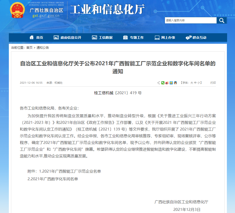 TOP. 07 縱覽線纜集團(tuán)獲得“廣西智能工廠示范企業(yè)”榮譽(yù)稱號(hào) 縱覽線纜集團(tuán)成功入選2021年廣西智能工廠示范企業(yè)名單,獲得“廣西智能工廠示范企業(yè)”榮譽(yù)稱號(hào)。標(biāo)志著縱覽線纜集團(tuán)生產(chǎn)制造、產(chǎn)品質(zhì)量把控能力和水平邁上一個(gè)新的臺(tái)階,市場(chǎng)競(jìng)爭(zhēng)力進(jìn)一步增強(qiáng)。