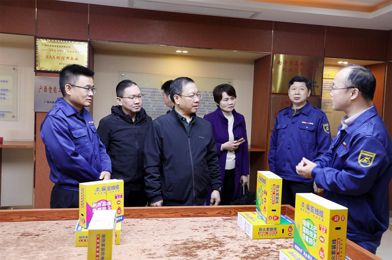 2月11日,南寧市市場監(jiān)管局黨組書記、局長李善欽帶領(lǐng)該局各職能部門負(fù)責(zé)人就重點龍頭企業(yè)如何更有效地參與南寧經(jīng)濟建設(shè)和在強首府戰(zhàn)略中發(fā)揮主力軍作用到縱覽集團調(diào)研,公司董事長陳秀銳全程陪同。 李善欽局長一行在陳秀銳董事長的陪同下,參觀了集團智能監(jiān)造系統(tǒng)、榮譽展廳、國家CNAS認(rèn)可實驗室和生產(chǎn)車間。李善欽局長對我集團作為廣西工業(yè)龍頭和廣西線纜行業(yè)唯一榮獲自治區(qū)、南寧市政府質(zhì)量獎的企業(yè)在質(zhì)量管理、產(chǎn)品檢測、品牌建設(shè)、知識產(chǎn)權(quán)保護、標(biāo)準(zhǔn)化等方面工作給予充分肯定,并表示將進一步發(fā)揮市場監(jiān)管部門職能作用指導(dǎo)和支持縱覽集團的高質(zhì)量發(fā)展。 調(diào)研組通過參觀走訪和座談交流,進一步了解了我集團當(dāng)前經(jīng)營狀況、科研能力、競爭優(yōu)勢以及更有效參與南寧經(jīng)濟建設(shè)需要政府職能部門等方面的支持。 公司領(lǐng)導(dǎo)劉小祥、吳培軍、陳思行、黎永豪陪同調(diào)研。 |