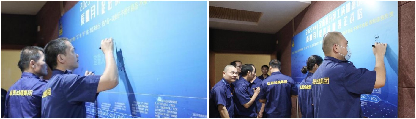 隨著第46個(gè)全國“質(zhì)量月”到來,為深入貫徹落實(shí)黨中央、國務(wù)院關(guān)于建設(shè)質(zhì)量強(qiáng)國的重大決策部署,響應(yīng)國家市場監(jiān)督管理總局關(guān)于開展2023年全國“質(zhì)量月”號(hào)召。9月1日,縱覽線纜集團(tuán)舉行了以“全面提升員工質(zhì)量意識(shí) 促進(jìn)質(zhì)量強(qiáng)企戰(zhàn)略”為主題的質(zhì)量月活動(dòng)啟動(dòng)儀式。集團(tuán)董事長陳秀銳出席會(huì)議并動(dòng)員講話,質(zhì)量月活動(dòng)組委會(huì)組長劉小祥,副組長吳培軍、黎永豪,各中心分管領(lǐng)導(dǎo)、員工骨干等80人參加會(huì)議。 會(huì)議開始前,與會(huì)人員積極自發(fā)參與質(zhì)量承諾簽名儀式,在寫有“全面提升員工質(zhì)量意識(shí),促進(jìn)質(zhì)量強(qiáng)企戰(zhàn)略”的簽名墻上簽名,是與會(huì)人員對“我生產(chǎn),我負(fù)責(zé)”責(zé)任文化的莊嚴(yán)承諾。 質(zhì)量月活動(dòng)組委會(huì)組長劉小祥向大家強(qiáng)調(diào)質(zhì)量月對企業(yè)的重要意義以及如何開展全員質(zhì)量意識(shí)提升的講話;質(zhì)量月活動(dòng)組委會(huì)執(zhí)行組長、質(zhì)量部經(jīng)理周軍宣讀了《關(guān)于開展2023年“質(zhì)量月”活動(dòng)的通知》,并對“質(zhì)量月”產(chǎn)品質(zhì)量分享會(huì)、質(zhì)量管理知識(shí)競賽和技能競賽等活動(dòng)方案作講解說明。 陳秀銳董事長在作動(dòng)員講話時(shí)強(qiáng)調(diào),“質(zhì)量是做出來的,而非管出來的”。他要求全體縱覽人都要有質(zhì)量紅線意識(shí),質(zhì)量即縱覽立身之本、發(fā)展之基,更關(guān)乎消費(fèi)者的生命、企業(yè)的生命,是為實(shí)現(xiàn)縱覽高質(zhì)量發(fā)展的基礎(chǔ)保障。他指出,當(dāng)今行業(yè)內(nèi)產(chǎn)品質(zhì)量良莠不齊,縱覽作為廣西線纜行業(yè)的領(lǐng)跑者,要利用好長期以來服務(wù)電網(wǎng)的質(zhì)量優(yōu)勢、服務(wù)優(yōu)勢;以“質(zhì)量月”活動(dòng)為契機(jī),持續(xù)提高全員質(zhì)量意識(shí)、提升員工專業(yè)技能水平、立好質(zhì)量管理標(biāo)桿,必須將質(zhì)量工作作為長期的基礎(chǔ)性工作認(rèn)認(rèn)真真地抓實(shí)抓細(xì)、一步一個(gè)腳印地穩(wěn)步推進(jìn)。 最后,全體成員莊嚴(yán)宣誓,活動(dòng)領(lǐng)導(dǎo)小組與參會(huì)人員合影。 |