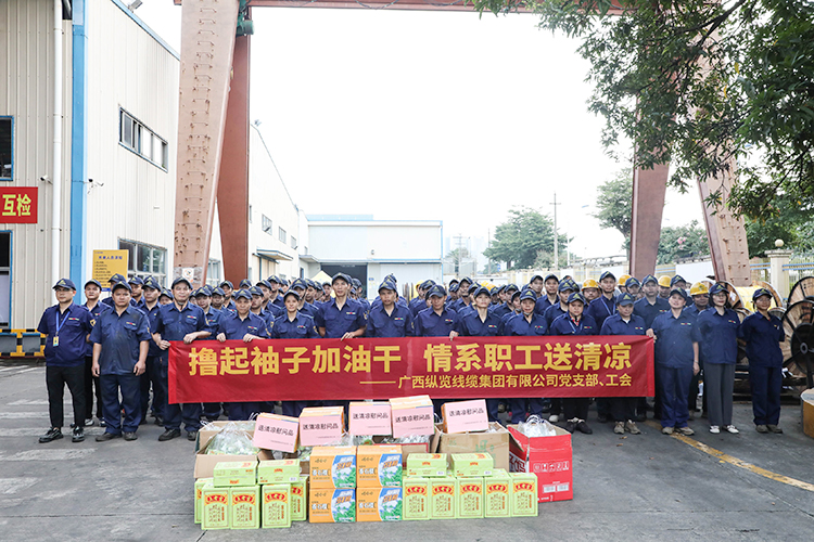 7月22日上午,廣西縱覽線纜集團(tuán)黨支部、工會(huì)帶著清涼飲料、防暑藥品走進(jìn)生產(chǎn)車間開展”擼起袖子加油干 情系職工送清涼“慰問活動(dòng),為奮斗在烈烈夏日里的一線生產(chǎn)員工送上的一縷清涼。集團(tuán)常務(wù)副總經(jīng)理陳思源、集團(tuán)支部書記吳培軍、工會(huì)主席陳楊、工廠中心副總監(jiān)黎永豪出席慰問活動(dòng)。 |