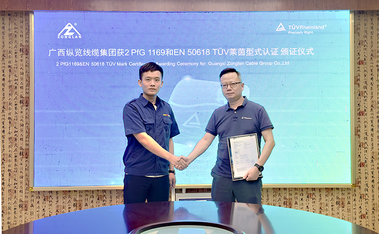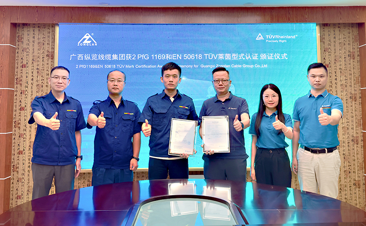 9月10日,德國TüV萊茵型式認(rèn)證頒證儀式在廣西縱覽線纜集團(tuán)舉行。國際獨(dú)立第三方檢測、檢驗和認(rèn)證機(jī)構(gòu)德國TüV萊茵大中華區(qū)(以下簡稱“TüV萊茵”)為縱覽線纜集團(tuán)頒發(fā)“2PfG 1169及歐盟EN 50618”等兩項光伏產(chǎn)品認(rèn)證證書。TüV萊茵商用與工業(yè)產(chǎn)品服務(wù)部經(jīng)理武藝、廣西縱覽集團(tuán)常務(wù)副總經(jīng)理陳思源等出席頒證儀式。 武藝一行參觀了縱覽集團(tuán)MES自動化控制中心、榮譽(yù)展廳,了解縱覽集團(tuán)的生產(chǎn)過程管控、產(chǎn)品質(zhì)量控制、企業(yè)發(fā)展成就。陳思源對武藝一行的來訪表示歡迎,并介紹了縱覽集團(tuán)發(fā)展歷程,縱覽集團(tuán)響應(yīng)國家“雙碳”戰(zhàn)略目標(biāo),緊抓新能源市場發(fā)展機(jī)遇,成功開發(fā)光伏線纜系列產(chǎn)品,并取得TüV萊茵認(rèn)證,這不僅提升了公司光伏產(chǎn)品的市場競爭力,也對公司深耕新能源市場奠定了堅實(shí)的基礎(chǔ),公司今后將繼續(xù)圍繞光伏、風(fēng)電、儲能、新能源汽車等電纜產(chǎn)品持續(xù)深耕。武藝向陳思源介紹了TüV萊茵公司的發(fā)展歷程,TüV萊茵作為全球領(lǐng)先的第三方檢測、認(rèn)證和技術(shù)服務(wù)提供商,涉及到認(rèn)證、服務(wù)、檢測、環(huán)境保護(hù)、食品安全等眾多領(lǐng)域。 陳思源表示,縱覽集團(tuán)成立二十年來,始終專注于生產(chǎn)優(yōu)質(zhì)產(chǎn)品,不產(chǎn)低劣產(chǎn)品、不做低端客戶、不爭低端市場。公司堅持“服務(wù)電網(wǎng),走進(jìn)萬家”,服務(wù)高端用戶,是國家綠色工廠、國家高新技術(shù)企業(yè)、國家知識產(chǎn)權(quán)優(yōu)勢企業(yè)、中國機(jī)械500強(qiáng)、廣西電線電纜行業(yè)龍頭企業(yè)、廣西民營企業(yè)百強(qiáng)企業(yè),先后榮獲自治區(qū)主席質(zhì)量獎提名獎、南寧市市長質(zhì)量獎,而此次TüV萊茵認(rèn)證促使廣西縱覽集團(tuán)實(shí)現(xiàn)了與國際標(biāo)準(zhǔn)的全面接軌。 雙方還圍繞后期認(rèn)證服務(wù)、技術(shù)交流進(jìn)行了深入的探討,雙方并對后期合作方向進(jìn)行了廣泛的交流。