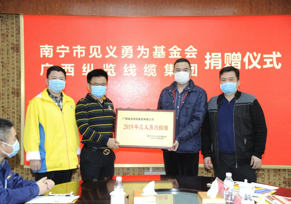 為了解企業(yè)目前的防疫措施和復(fù)工復(fù)產(chǎn)情況,4月15日上午,在南寧市委政法委副書記譚尚武帶領(lǐng)下,南寧市委政法委第三黨支部、南寧市見義勇為基金會到廣西縱覽線纜集團有限公司開展黨員活動日?;顒又校h員們實地調(diào)研活動,詳細了解企業(yè)需求,協(xié)調(diào)解決實際問題。廣西縱覽線纜集團有限公司還捐出慈善基金10萬余元用于支持南寧市見義勇為事業(yè),這也是南寧市見義勇為基金會收到的第一筆善款。 黨員們深入了解企業(yè)疫情防控和復(fù)工復(fù)產(chǎn)情況,認真聽取企業(yè)在復(fù)工復(fù)產(chǎn)過程中遇到的問題以及未來的發(fā)展愿景。南寧市委政法委副書記譚尚武對廣西縱覽線纜集團有限公司為疫情防控和經(jīng)濟發(fā)展所做的工作給予肯定,并希望企業(yè)在做好疫情防控和安全生產(chǎn)的前提下,增強創(chuàng)新研發(fā)能力,不斷提升產(chǎn)品核心競爭力。 廣西縱覽線纜集團有限公司陳秀銳董事長介紹,公司常年支持各項慈善公益事業(yè),面對新冠肺炎疫情,在抓緊復(fù)工復(fù)產(chǎn)的同時,以實際行動助力戰(zhàn)疫,共支援電線電纜緊急物資近2000萬元??v覽集團曾向社會公開承諾,為大力支持南寧市見義勇為工作,從2019年至2022年,每銷售一公里電線電纜產(chǎn)品,就為南寧市見義勇為基金會捐獻1元錢。 當天,廣西縱覽線纜集團有限公司兌現(xiàn)承諾,向市見義勇為基金會捐出慈善基金10萬余元,以實際行動支持南寧市見義勇為工作,為大力弘揚社會正氣貢獻力 (作者:劉莉) |