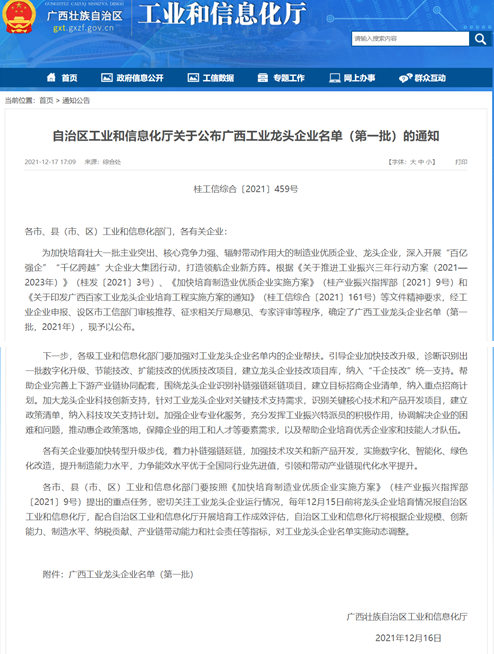 12月16日,自治區(qū)工業(yè)和信息化廳公布了關于廣西工業(yè)龍頭企業(yè)名單(第一批)的通知,縱覽線纜集團再次榮膺“廣西工業(yè)龍頭企業(yè)”! 集團始終乗持"做好產品回報客戶,做好企業(yè)回報社會"使命,堅守質量底線,注重科技創(chuàng)新,在高質量發(fā)展的軌道上跑出自己的工業(yè)加速度。持續(xù)榮獲"廣西龍頭企業(yè)"榮譽稱號,是對集團莫大的鼓舞,是對集團經營發(fā)展高度認可。未來,集團將進一步做好精細管理,明確發(fā)展目標,加強新四化戰(zhàn)略指引,勵精圖治,助力廣西電線電纜高質量發(fā)展。 |