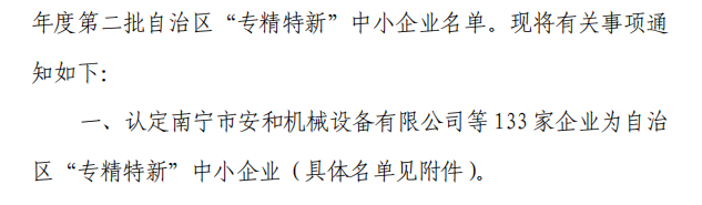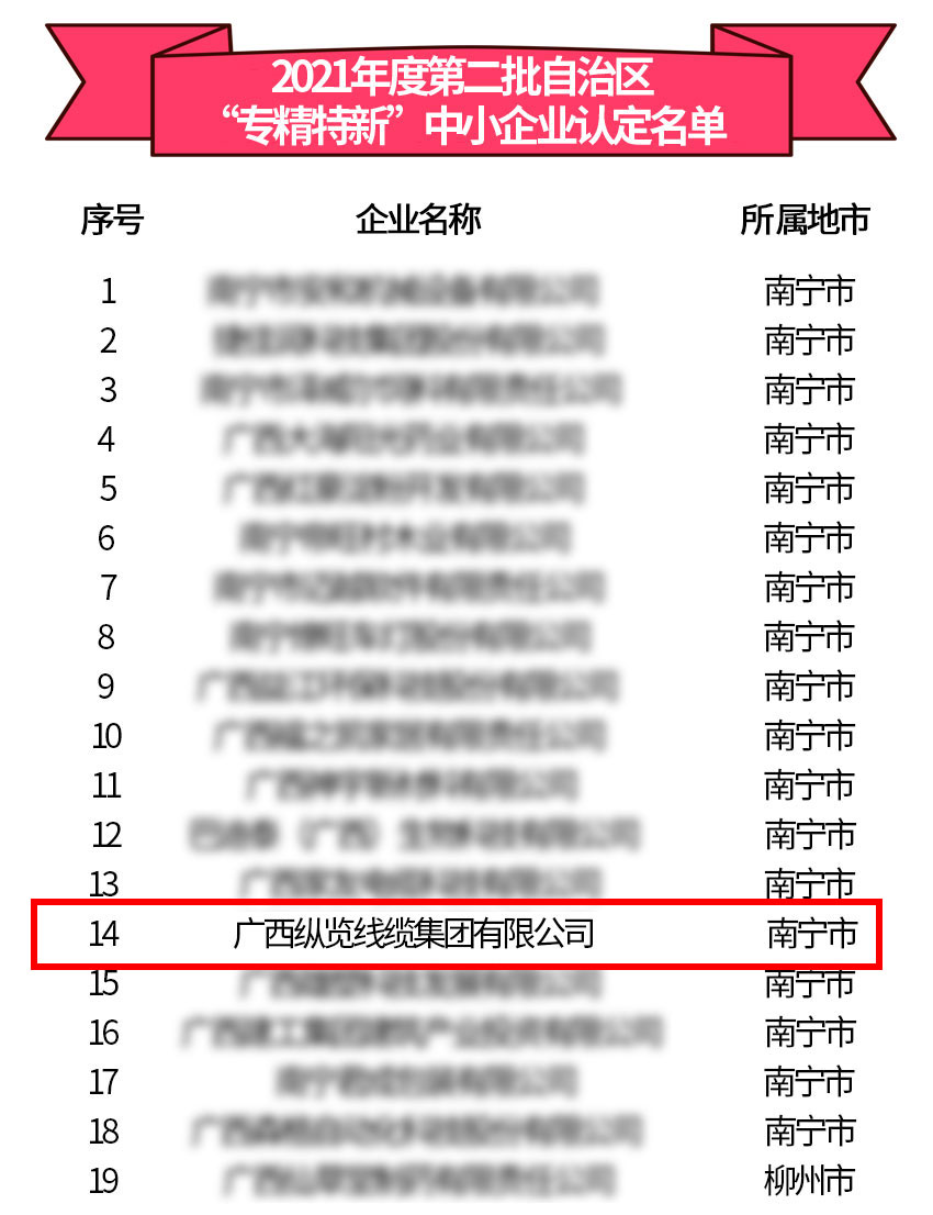 日前,廣西工信廳發(fā)布了2021年度第二批自治區(qū)“專精特新”企業(yè)認(rèn)定名單,我司榜上有名。 我司自成立以來,高度重視產(chǎn)品開發(fā)、技術(shù)創(chuàng)新、科研投入、人才建設(shè)工作,為公司持續(xù)健康、高質(zhì)量發(fā)展奠定了堅實基礎(chǔ)。已建設(shè)成為集電線電纜上下游產(chǎn)品研發(fā)、生產(chǎn)、銷售為一體的國家級高新技術(shù)企業(yè),廣西最大的電纜生產(chǎn)基地和中高壓導(dǎo)線生產(chǎn)基地,廣西智能制造示范企業(yè),廣西機(jī)械工業(yè)行業(yè)10強(qiáng)企業(yè)、廣西技術(shù)創(chuàng)新示范企業(yè)。在廣西線纜行業(yè)中,是唯一榮獲“全國工業(yè)品牌培育示范企業(yè)”,唯一建立有國家CNSA認(rèn)可實驗室的企業(yè),唯一榮獲“國家級綠色工廠”的企業(yè),唯一榮獲“自治區(qū)政府質(zhì)量獎和市級政府質(zhì)量獎”的企業(yè),唯一全系列產(chǎn)品獲得進(jìn)入”廣西名優(yōu)工業(yè)產(chǎn)品”名錄的企業(yè);已連續(xù)兩年進(jìn)入廣西企業(yè)100強(qiáng),連續(xù)三年進(jìn)入廣西民營企業(yè)100強(qiáng)。 |