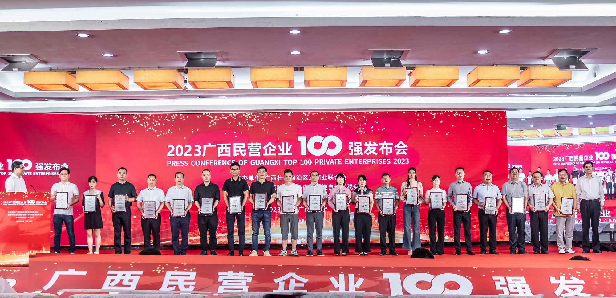 9月5日,2023廣西民營(yíng)企業(yè)100強(qiáng)發(fā)布會(huì)在南寧召開(kāi)。自治區(qū)黨委常委、統(tǒng)戰(zhàn)部部長(zhǎng)王心富出席會(huì)議并講話(huà),自治區(qū)人大常委會(huì)黨組副書(shū)記黃偉京,自治區(qū)副主席、自治區(qū)工商聯(lián)主席眭國(guó)華,自治區(qū)政協(xié)副主席錢(qián)學(xué)明出席會(huì)議,并為上榜的企業(yè)頒發(fā)證書(shū);自治區(qū)黨委統(tǒng)戰(zhàn)部副部長(zhǎng)、自治區(qū)工商聯(lián)黨組書(shū)記雷永達(dá)主持發(fā)布會(huì)并代表自治區(qū)工商聯(lián)發(fā)布了“2023廣西民營(yíng)企業(yè)100強(qiáng)”“2023廣西民營(yíng)企業(yè)制造業(yè)100強(qiáng)”“2023廣西民營(yíng)企業(yè)就業(yè)10強(qiáng)”等榜單。 縱覽線(xiàn)纜集團(tuán)成為廣西線(xiàn)纜行業(yè)唯一上榜廣西民營(yíng)企業(yè)和廣西民營(yíng)企業(yè)制造業(yè)100強(qiáng)企業(yè),充分彰顯了縱覽線(xiàn)纜集團(tuán)作為行業(yè)質(zhì)量管理標(biāo)桿企業(yè)的自身高質(zhì)量發(fā)展能力和在參與服務(wù)地方經(jīng)濟(jì)社會(huì)發(fā)展中所發(fā)揮的積極作用。 在發(fā)布會(huì)上,王心富向榮膺榜單的民營(yíng)企業(yè)表示祝賀,充分肯定廣西民營(yíng)經(jīng)濟(jì)發(fā)展取得的成就。他強(qiáng)調(diào),自治區(qū)工商聯(lián)發(fā)布2023廣西民營(yíng)企業(yè)100強(qiáng)榜單,對(duì)鼓勵(lì)、引導(dǎo)、支持民營(yíng)企業(yè)創(chuàng)新創(chuàng)造,大力促進(jìn)民營(yíng)經(jīng)濟(jì)高質(zhì)量發(fā)展,具有十分重要的意義。希望廣大民營(yíng)企業(yè)家深刻領(lǐng)悟“兩個(gè)確立”的決定性意義,堅(jiān)決做到“兩個(gè)維護(hù)”,切實(shí)把思想和行動(dòng)統(tǒng)一到黨中央對(duì)當(dāng)前形勢(shì)的分析判斷和經(jīng)濟(jì)工作的決策部署上來(lái),切實(shí)增強(qiáng)政治責(zé)任感、歷史使命感和事業(yè)緊迫感,堅(jiān)定發(fā)展信心,完整準(zhǔn)確全面貫徹新發(fā)展理念,用好政策空間、找準(zhǔn)發(fā)力方向,緊跟黨走贏發(fā)展、搶抓機(jī)遇謀發(fā)展、文化鑄魂促發(fā)展,扎實(shí)走好高質(zhì)量發(fā)展之路,為建設(shè)新時(shí)代壯美廣西、譜寫(xiě)中國(guó)式現(xiàn)代化廣西篇章作出民營(yíng)經(jīng)濟(jì)人士應(yīng)有的貢獻(xiàn)。 陳思行(左七)代表縱覽線(xiàn)纜集團(tuán)上臺(tái)領(lǐng)獎(jiǎng) 自治區(qū)工商聯(lián)、科技廳、工信廳、民政廳、農(nóng)業(yè)農(nóng)村廳、市場(chǎng)監(jiān)管局、廣西稅務(wù)局負(fù)責(zé)人,廣西企業(yè)和企業(yè)家聯(lián)合會(huì)相關(guān)負(fù)責(zé)人,上榜企業(yè)代表等200余人參加發(fā)布會(huì)。公司領(lǐng)導(dǎo)吳培軍、陳思行出席會(huì)議。 |