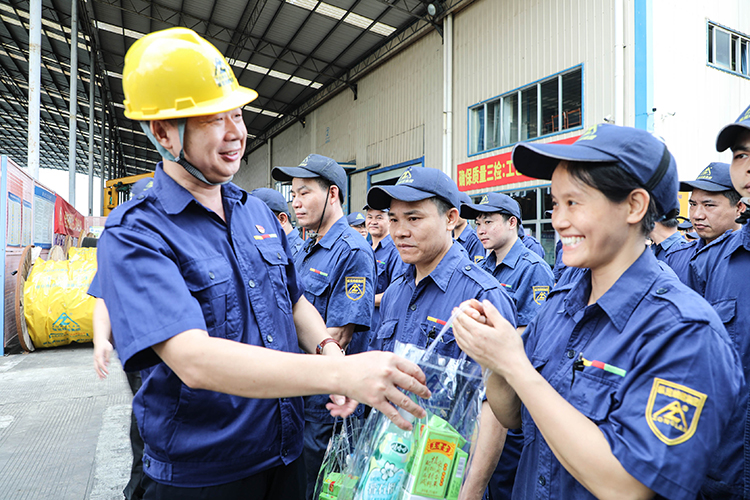 7月22日上午,廣西縱覽線纜集團(tuán)黨支部、工會(huì)帶著清涼飲料、防暑藥品走進(jìn)生產(chǎn)車間開展”擼起袖子加油干 情系職工送清涼“慰問活動(dòng),為奮斗在烈烈夏日里的一線生產(chǎn)員工送上的一縷清涼。集團(tuán)常務(wù)副總經(jīng)理陳思源、集團(tuán)支部書記吳培軍、工會(huì)主席陳楊、工廠中心副總監(jiān)黎永豪出席慰問活動(dòng)。 |